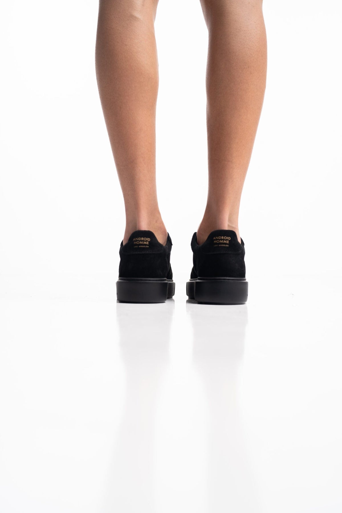 • Black suede heel tab
