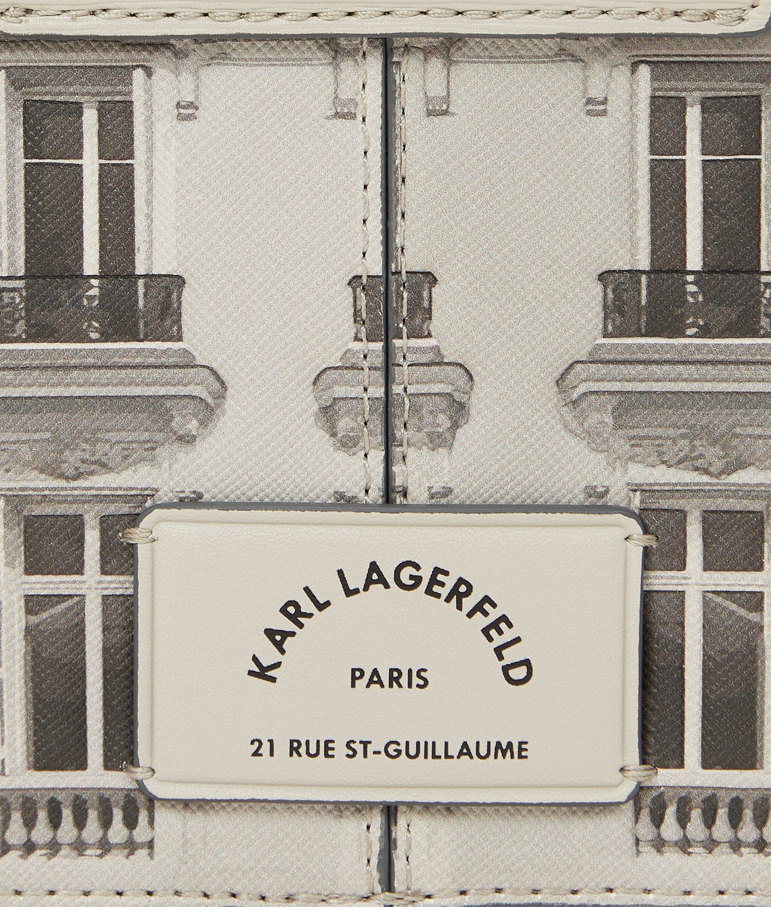 A tribute to the iconic Parisian building dear to Karl Lagerfeld, this collectible Rue St-Guillaume crossbody bag blends functionality with fashion history. The Maison silhouette, adorned with intricate appliqué detailing, offers a structured top handle and a versatile detachable strap, ideal for transitioning from daytime exploration to evening elegance.